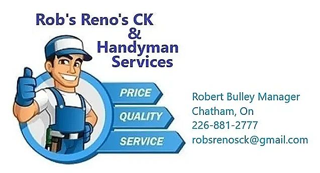 At Rob's Reno's CK, Our vision is to become everyone's first choice for kitchen , bathroom, & basement renovations in Chatham-Kent Ontario. We also do Laminate and Vinyl floor installation, Drywall and Painting. I'm committed to achieving this goal by consistently delivering exceptional workmanship and outstanding customer service at fair prices.